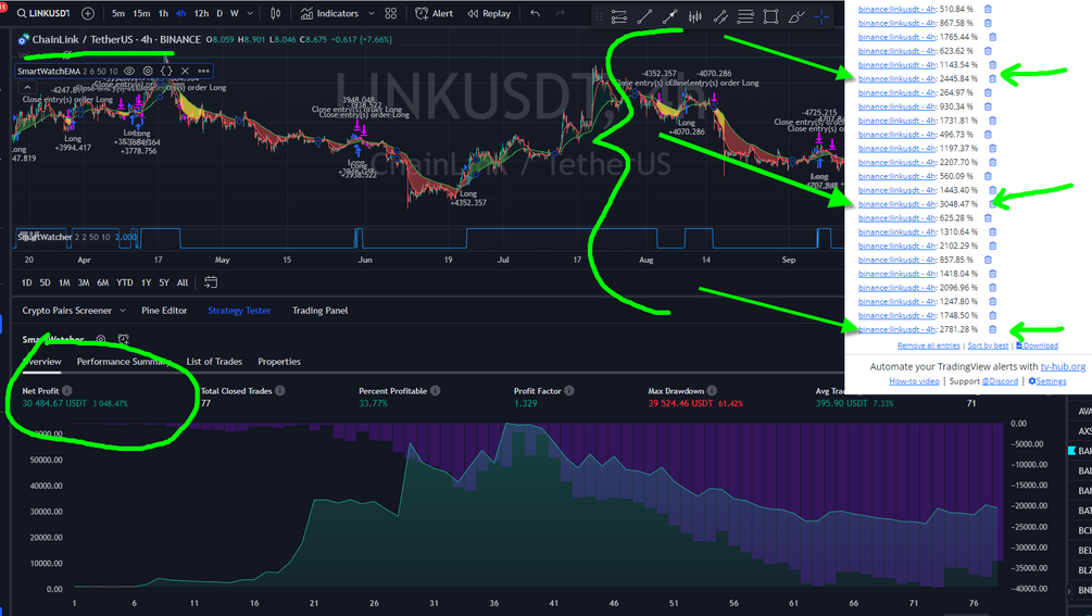 - Help with automating your script throught 3commas, Kryll and other trading bot marketplaces.