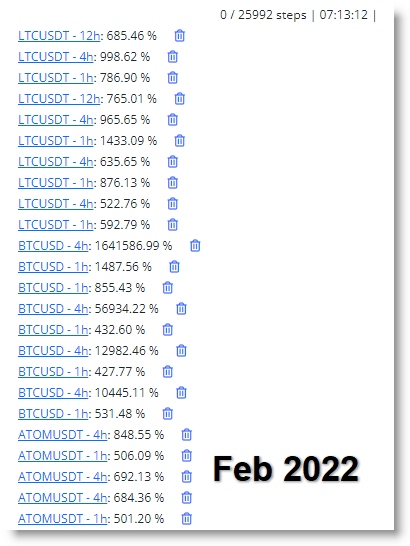 ATOM (above) shows consistent success and best settings uncover 430% gains in backtesting.